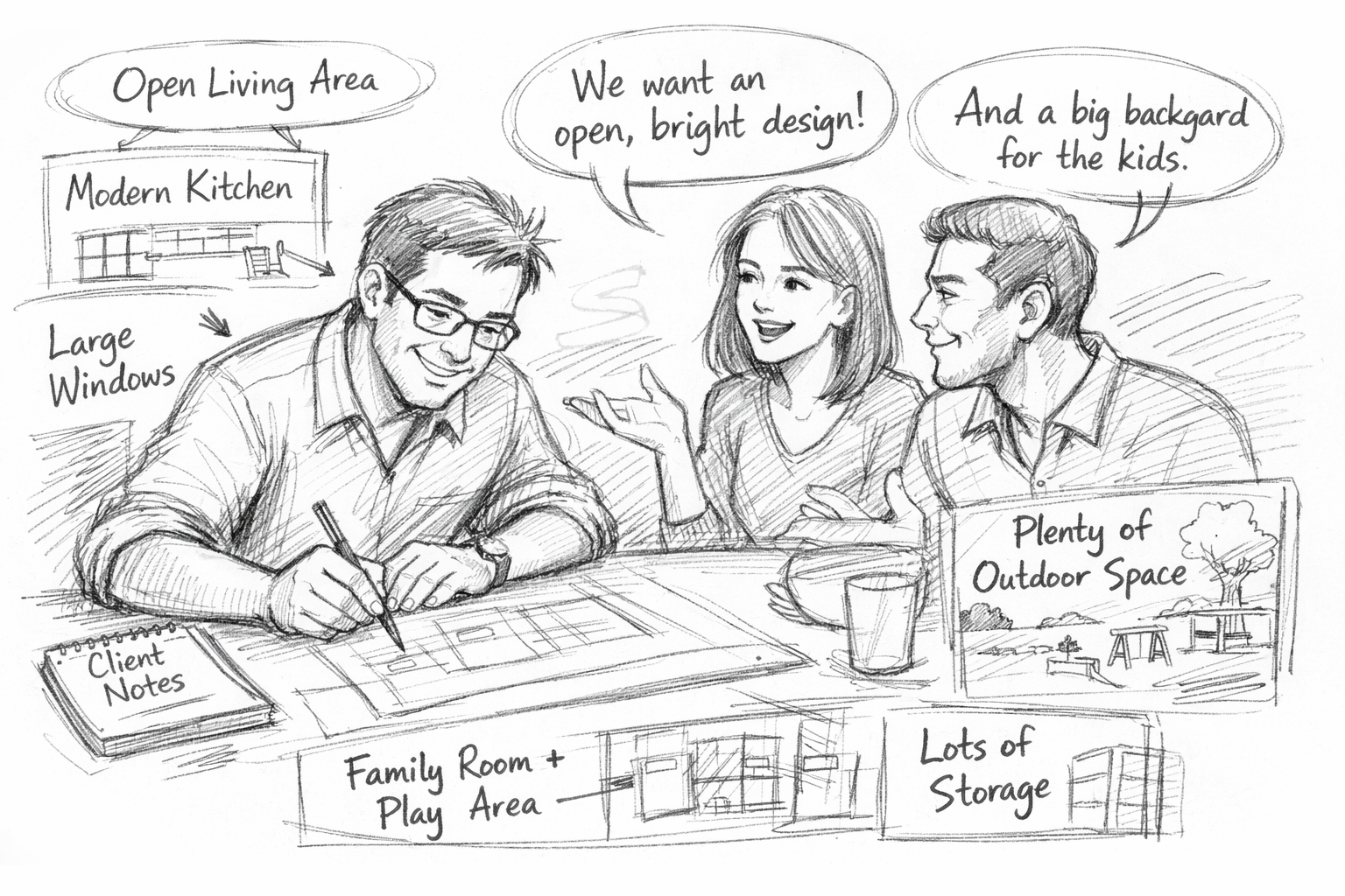 Most clients don’t come to an architect with clarity. They come with excitement, anxiety, Pinterest boards, and a deep attachment to what already feels familiar.